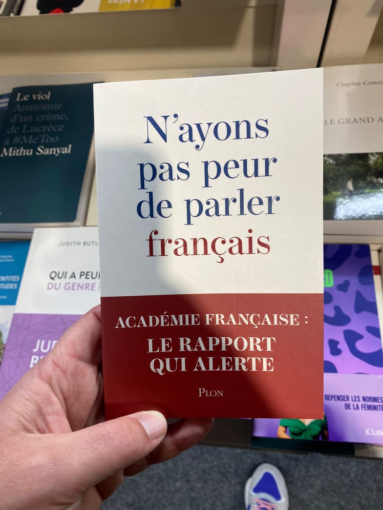 Le livre présenté ici est est la version longue d’un rapport qui « alerte » sur les dérives de l’utilisation excessive de l’anglais dans le quotidien des personnes francophones et les administrations, et qui « mettrait en péril », comme le langage inclusif, la langue française. Outre le fait que Le français va très bien, merci, et que les apports du franglais ne sont en aucun cas dangereux pour sa pratique, au contraire (voir, sur ce point, les arguments des linguistes qui étudient le sujet avec une approche scientifique, pas démagogique), le titre du livre est présenté sous la forme d’une injonction : ne pas avoir peur de parler français.